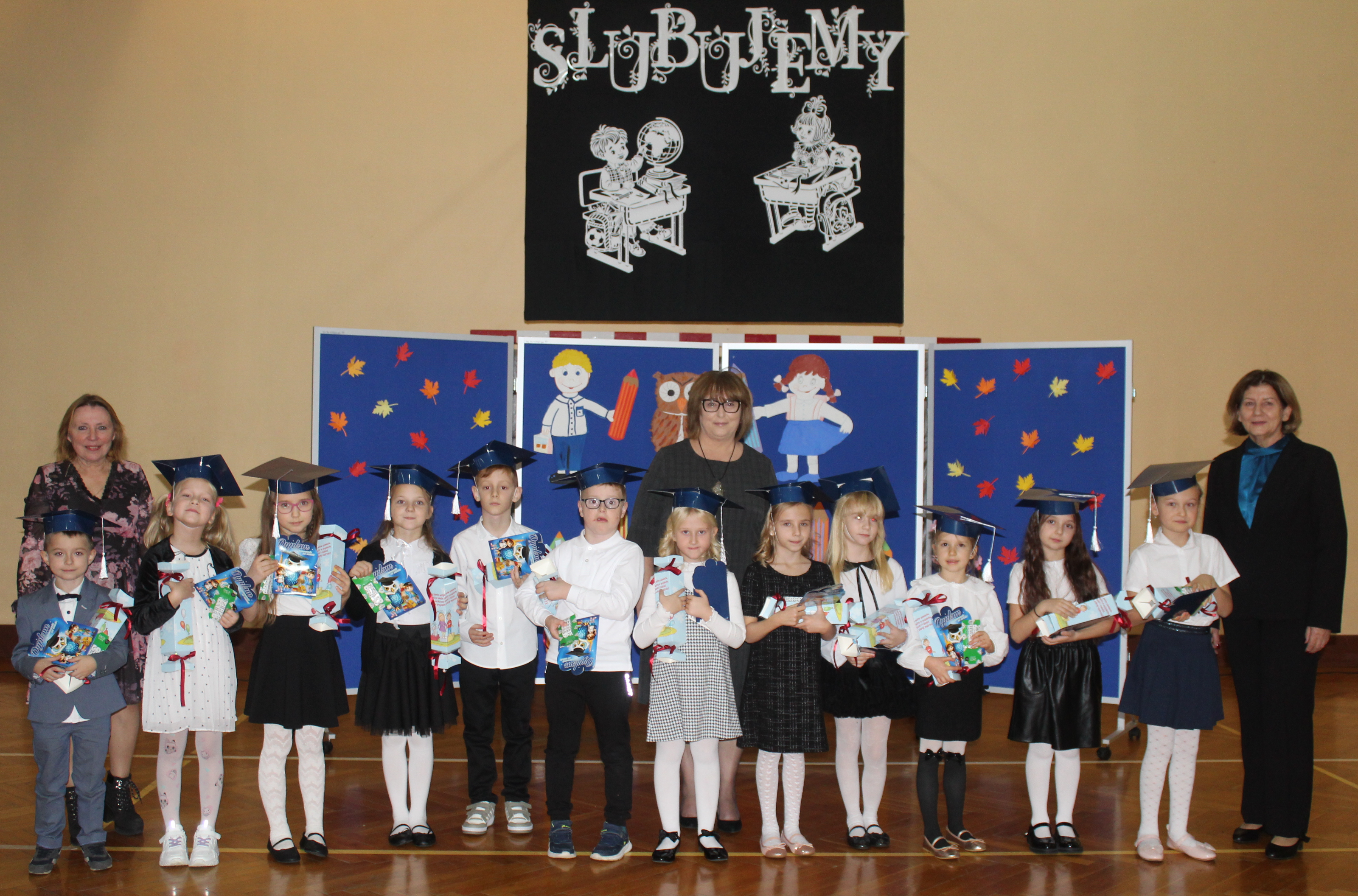 27.10.2025 roku uczniowie klasy pierwszej złożyli uroczyste ślubowanie i zostali przez Panią Dyrektor pasowani na uczniów naszej szkoły. Żeby udowodnić, że na to zasłużyli przygotowali występ, podczas którego pokazali jak wiele już się nauczyli. Dumni rodzice przygotowali upominki i słodki poczęstunek. Były pamiątkowe dyplomy i zdjęcia.