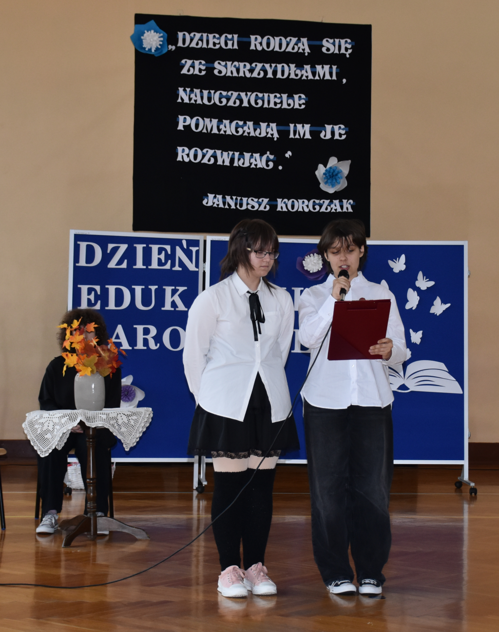 W miniony piątek, tj. 10 października odbyła się akademia z okazji Dnia Edukacji Narodowej. Z tej okazji uczniowie klas IV, VI i VIII przygotowali program artystyczny. Wierszem i piosenką podziękowali swoim nauczycielom za pracę, poświęcenie serca i cierpliwość. Z przymrużeniem oka przedstawili różne typy nauczycieli jakie znamy ze szkolnej codzienności. Przybliżyli także historię tego święta, tak ważnego dla polskiej edukacji. Po występie głos zabrała Dyrektor szkoły p. Ewa Pałucka i złożyła życzenia wszystkim pracownikom naszej placówki. Następnie przewodnicząca Rady Rodziców p. Joanna Pieregończuk-Kowalska wyraziła wdzięczność i podziękowania za trud wkładany w edukację uczniów szkoły w Suskowoli. Na zakończenie uroczystości przedstawiciele Samorządu Uczniowskiego wręczyli nauczycielom pamiątkowe upominki.