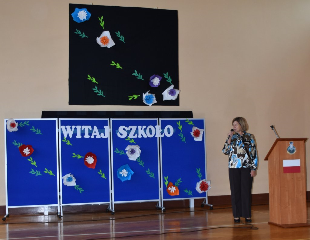 Zebranych rodziców, uczniów i nauczycieli powitała pani dyrektor Ewa Pałucka, życząc by praca i nauka była źródłem satysfakcji i radości.