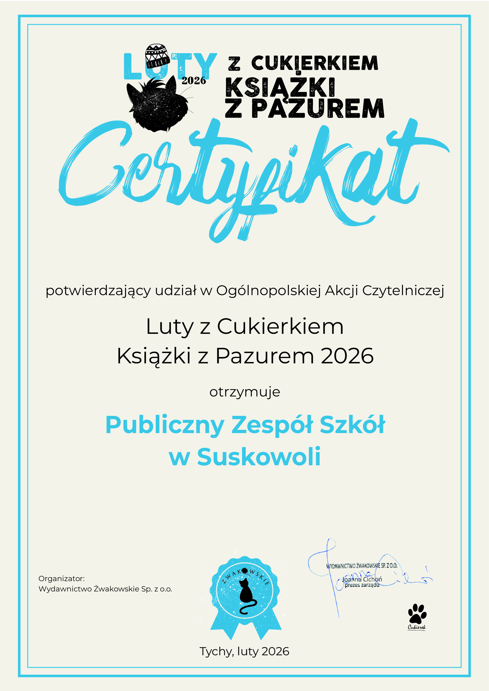 W naszej szkole do akcji włączyły się 3 osoby (kl. V, VIII). Uczniowie zachęcali do przeczytania książek w bezpośredniej rozmowie oraz pisali rekomendacje. Jedna z nich - w formie listu - dotarła nawet do dzieci z naszego przedszkola, które w związku z tym odwiedziły bibliotekę (https://www.suskowola.pl/przedszkole/aktualnosci/aktualnosci.html). Inna - zachęciła do eksperymentowania, następna - do rozmowy o tym, w jaki sposób uratować trudny dzień, a jeszcze inna - do rozważań o tym, co nas śmieszy.
